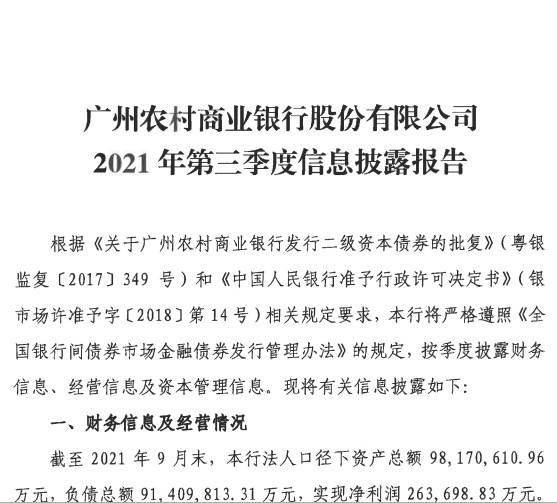 资料显示,广州农商行的前身是广州市农村信用合作社,2009年广州农村商业银行股份有限公司在经银监会批准后正式开业,2017年6月20日,广州农商行在香港联交所主板挂牌上市,成为广州第一家上市的银行机构。截至2021年9月末,广州农村商业银行资产总额为9817.06亿元,负债总额为9140.98亿元。