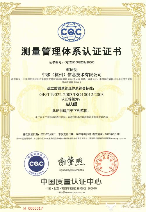 近日,网上有文章称,中国移动旗下智慧家庭运营中心(业内叫中移杭研)获得一个测量管理体系认证审核。这一证书有何含金量?