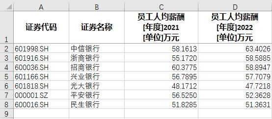 不过,也有部分股份制银行的员工人均薪资出现了逆势增长。