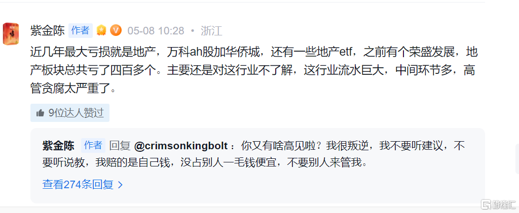 曾經,紫金陳也是地產行業的死多頭,買入萬科AH股、華僑城、榮盛發展以及房地產ETF。奈何郎有情妾無意,他這幾年投資地產虧損了四百多萬。