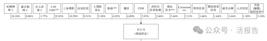 施毅博士通过LAV USD持股22.93%;陈飞博士通过上海礼轶持股10.59%;