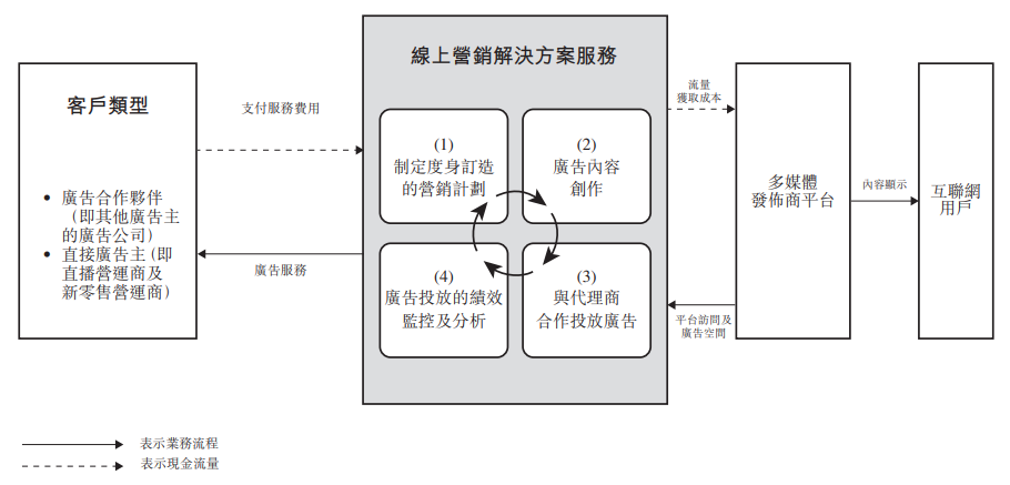 解决方案(包括针对流量获取的数据分析及咨询,以提高观众参与度、提升品牌知名度及最终将观众转化为订阅者或终端客户),以满足客户的多种业务需求。