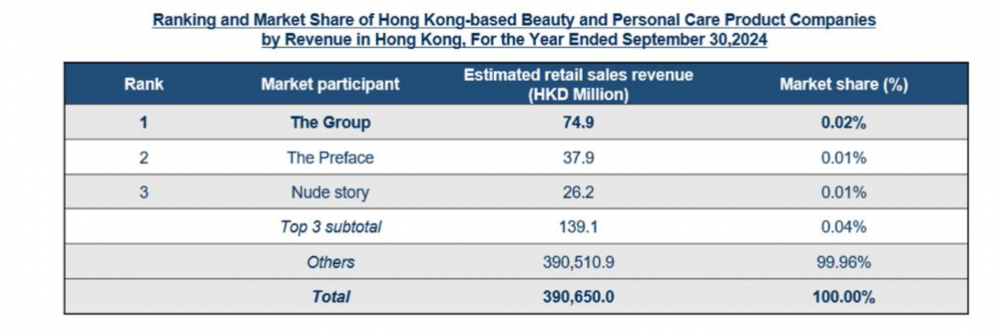 万港元的销售额在本地美容及个人护理品牌中位居首位