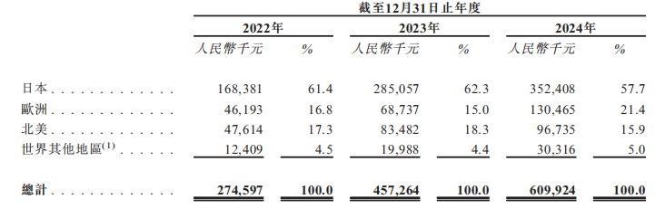 公司产品主要销往全球超过90个国家及地区,主要为日本、欧洲及北美。