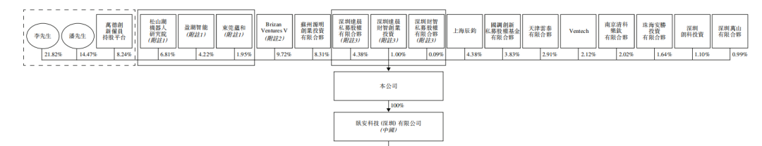 其他投资者包括:李泽湘教授控制的松山湖机器人研究所、盈湖智能、东莞蕴和,合计持股12.98%;Brizan Ventures(9.72%)、源码资本(8.31%)、电广传媒(000917.SZ)(5.47%)、高瓴资本(4.38%)、国调创新(3.83%)、Ventech China(2.12%)等。