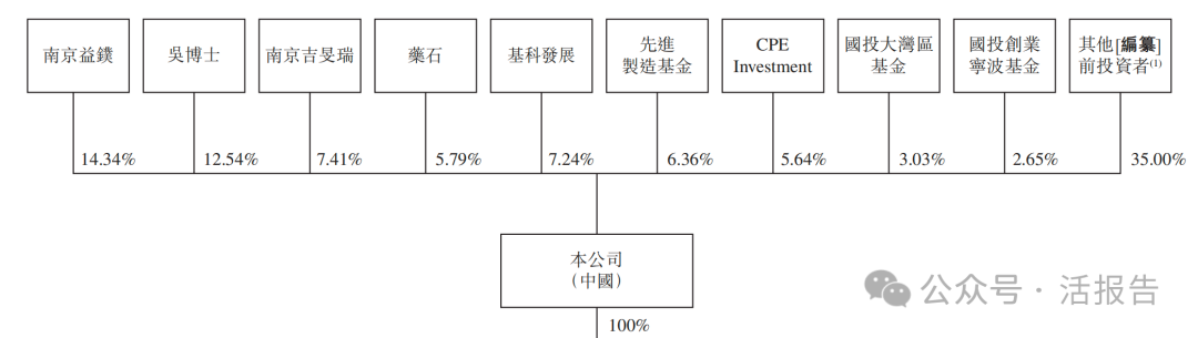 药石持股5.79%;Morningside Venture通过基科发展持股7.24%;国投招商通过先进制造基金持股6.36%;CPEInvestment持股5.64%;国投创业通过国投大湾区基金、国投创业宁波基金分别持股3.03%、2.65%;其他前投资者持股35%。