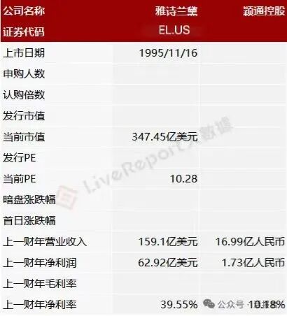 此次选取的公司的同行业IPO对比公司为:雅诗兰黛(EL.US)