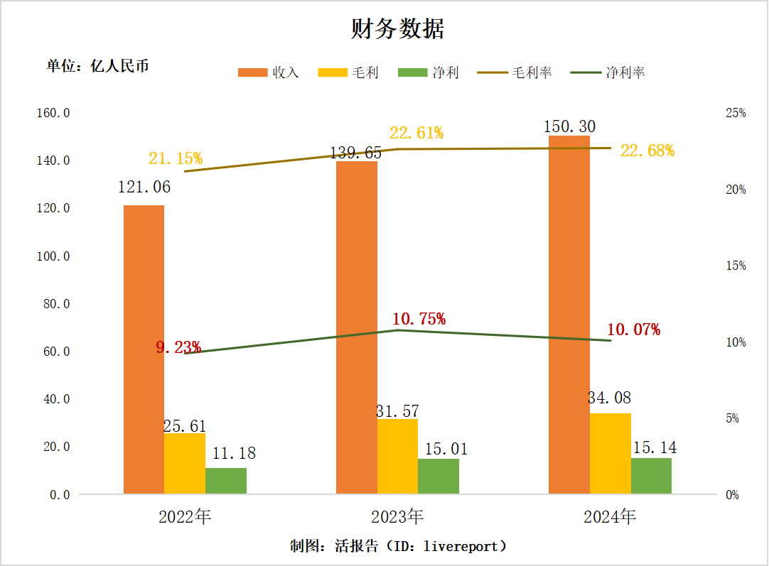 公司长期以来业绩保持稳定增长,收入、毛利及净利均呈现节节上升,2024年毛利率提升至22%以上,净利率有小幅下滑。