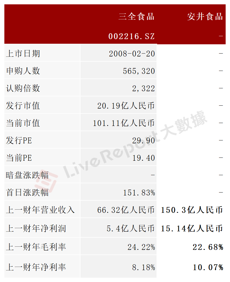 同行业IPO可比公司有:三全食品(002216.SZ)
