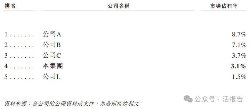按2023年收入计,公司在中国速冻面米制品行业排名第四;而按同年新兴速冻面米制品(指除传统速冻面米制品(即饺子、汤圆、粽子)外)收入计,则排名第一。