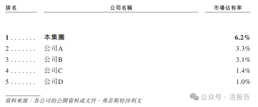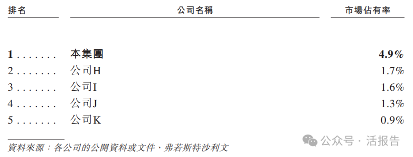 根据弗若斯特沙利文资料,按2023年收入计,公司是中国最大的速冻食品公司,市场份额为6.2%。2023年,公司在中国速冻调制食品市场排名第一,市场份额为12.7%,是第二名的约四倍;公司在中国速冻菜肴制品市场排名第一,市场份额为4.9%,超过该市场第二名至第四名的市场份额总和。