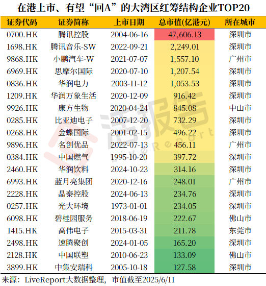目前,香港上市H股中市值在10亿港元以上,有望“回A”上市的大湾区企业约有18家。其中,