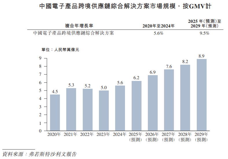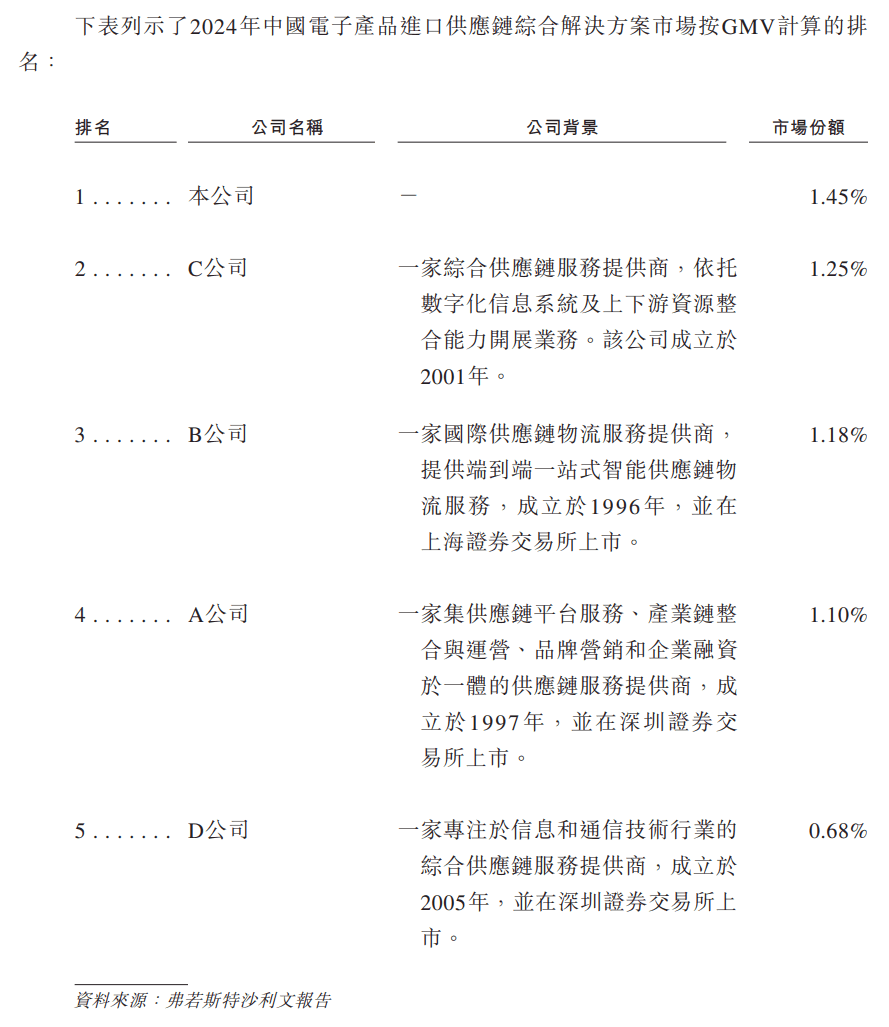 在中国电子产品跨境供应链服务综合解决方案提供商中排名第四,市场份额占比为