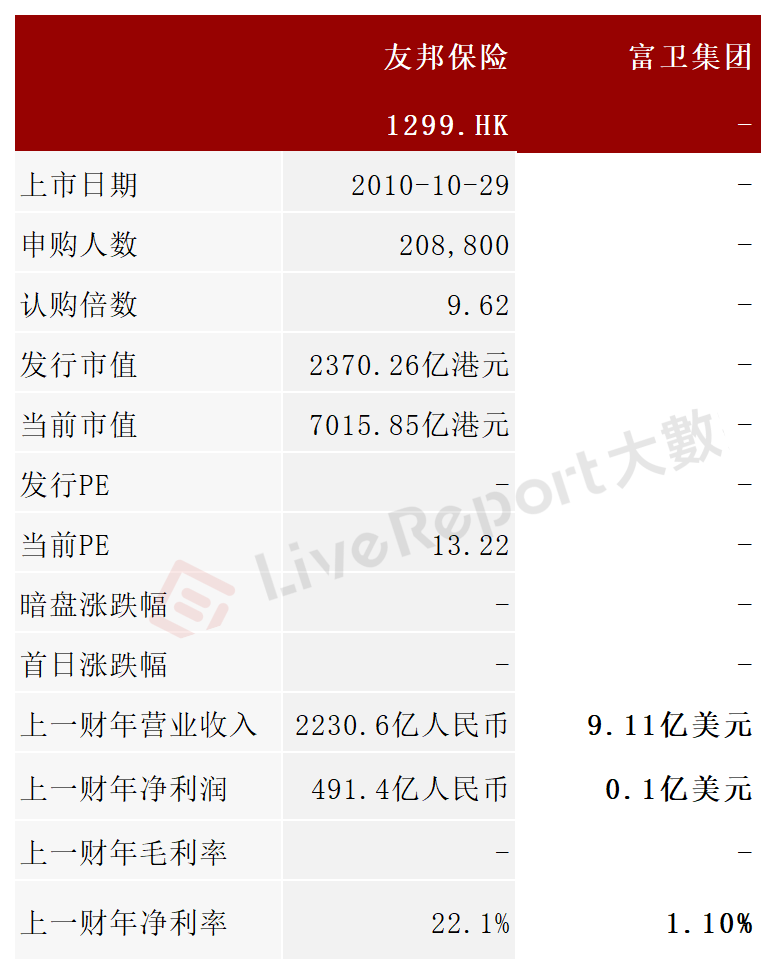 本次选取的对比公司为:友邦保险[1299]