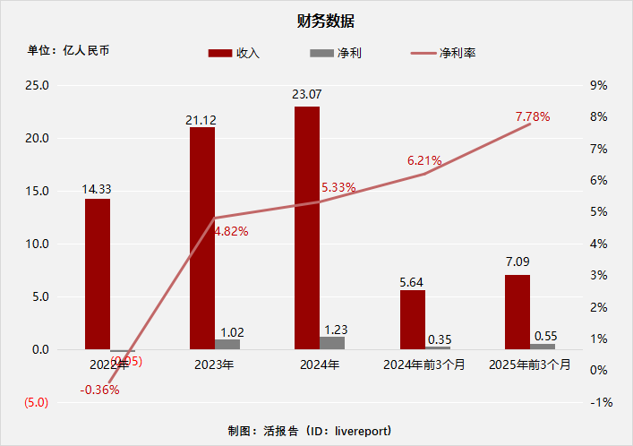 净利润分别约为人民币-0.05亿元、1.02亿元、1.23亿元、0.35亿元及0.55亿元,2023年扭亏为盈;