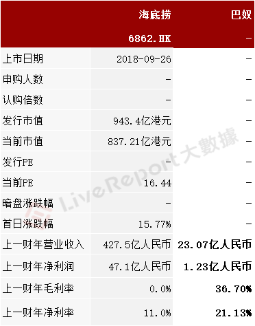 本次选取的同行业对比公司为:海底捞(6862.HK)