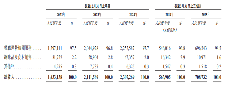 公司餐厅采用自营模式运营,绝大部分收入来餐厅运营相关服务,也有一部分来自销售调味品及食材以及其他。