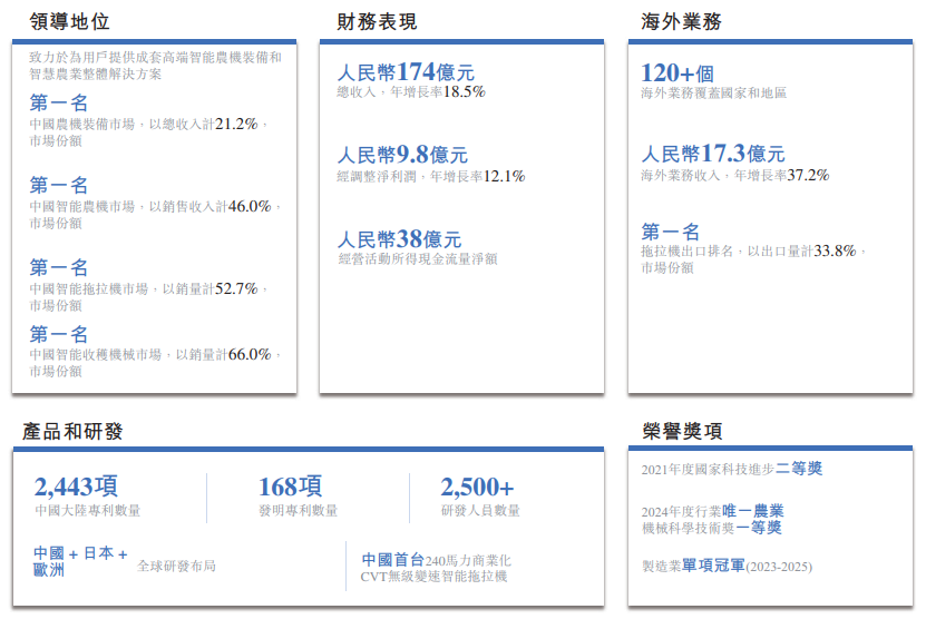 拥有全面的产品组合,涵盖高质量的智能农机,主要包括
