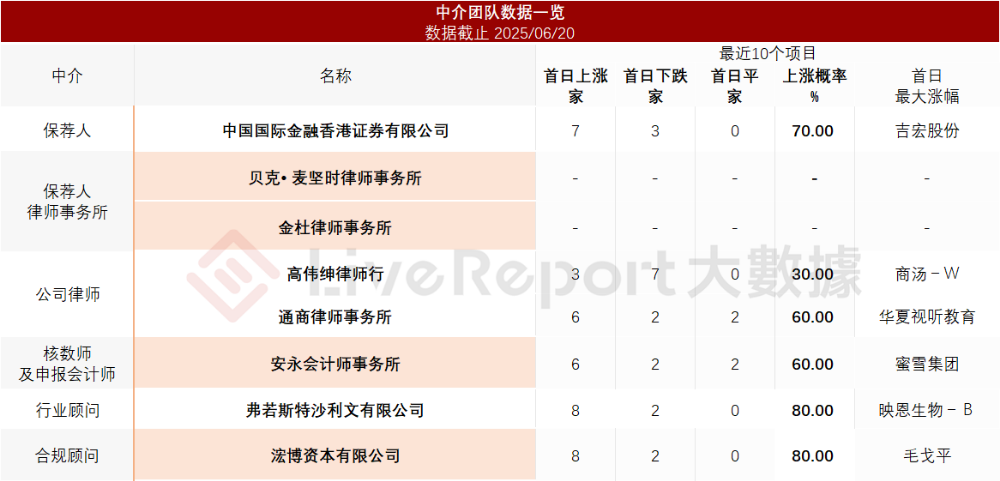 大数据统计,潍柴雷沃中介团队共计8家,其中保荐人1家,近10家保荐项目数据表现不错;公司律师共计2家,综合项目数据表现平平。整体而言中介团队历史数据表现可圈可点。
