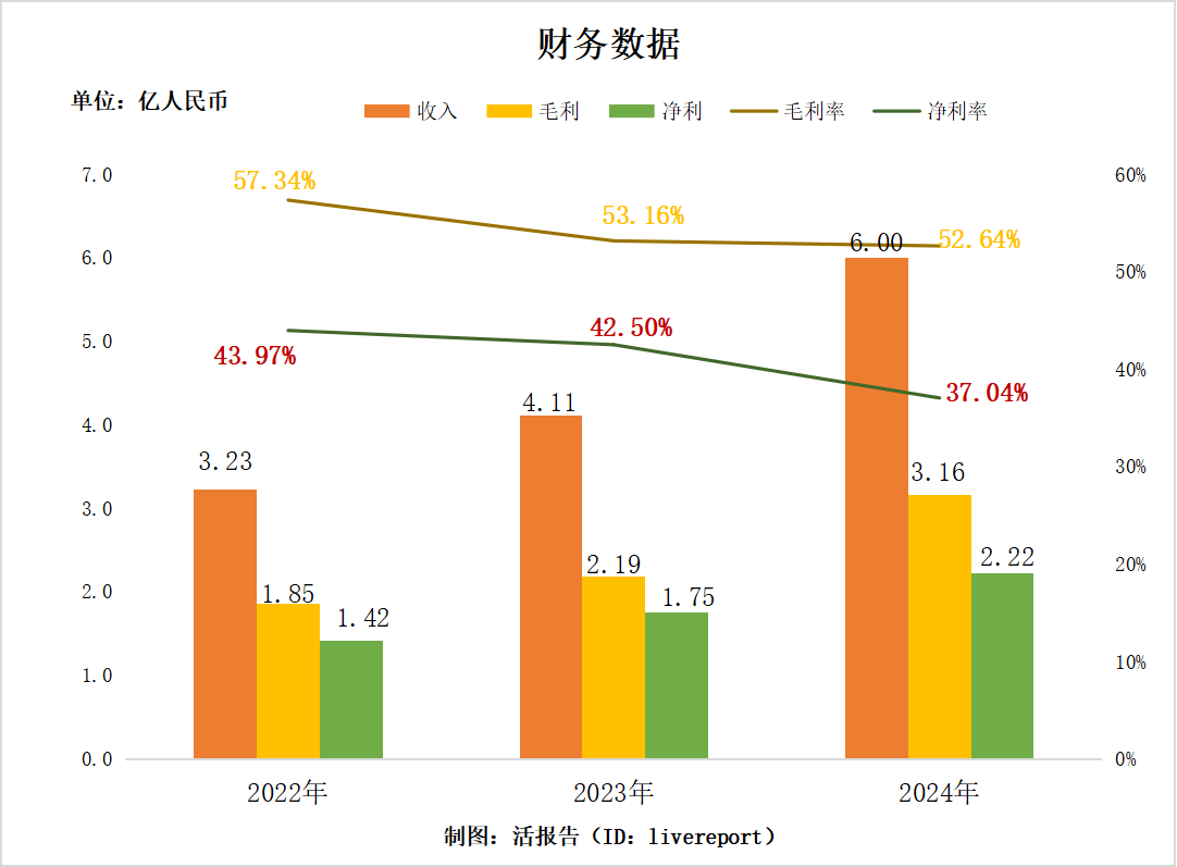 收入分别约为人民币3.23亿元、4.11亿元、6亿元,年复合增长率为36.34%;