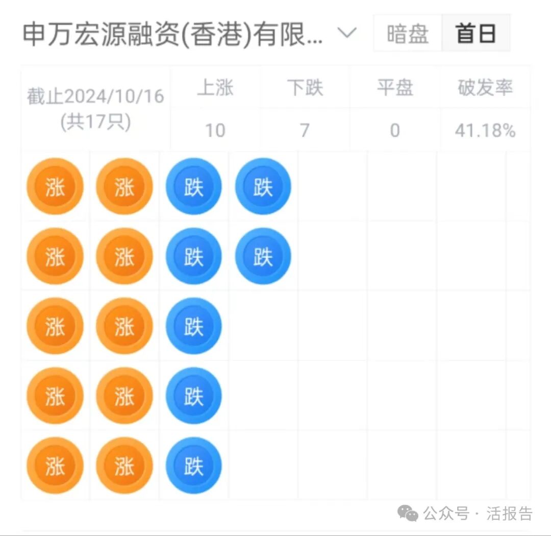 申万宏源香港近期保荐的首日破发率为41.18%。