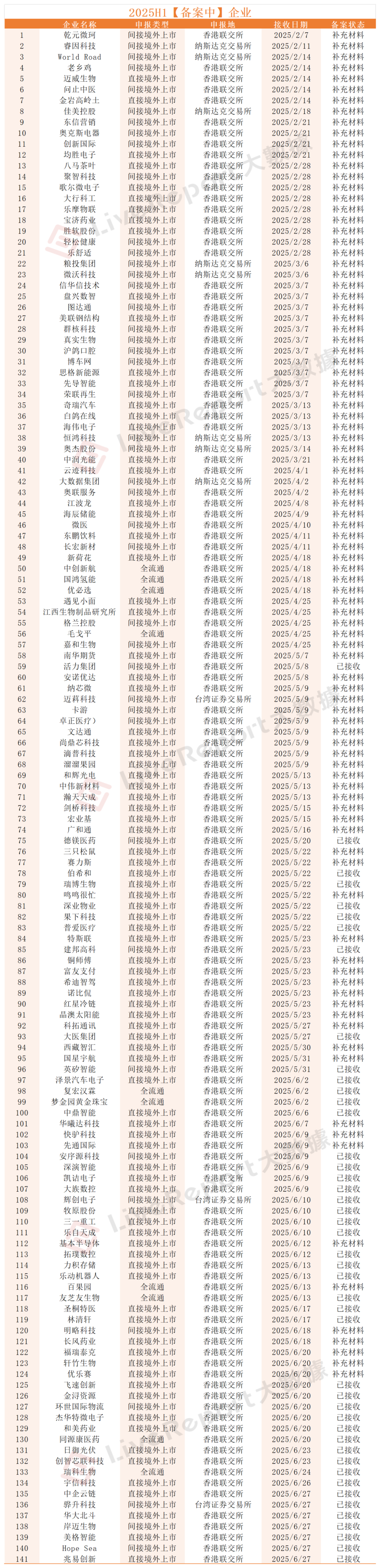 2025年上半年,在中国证监会备案的境内企业共182家,已超过2024年全年备案数量(171家),其中境外上市IPO 160家,申请股份“全流通”22家。