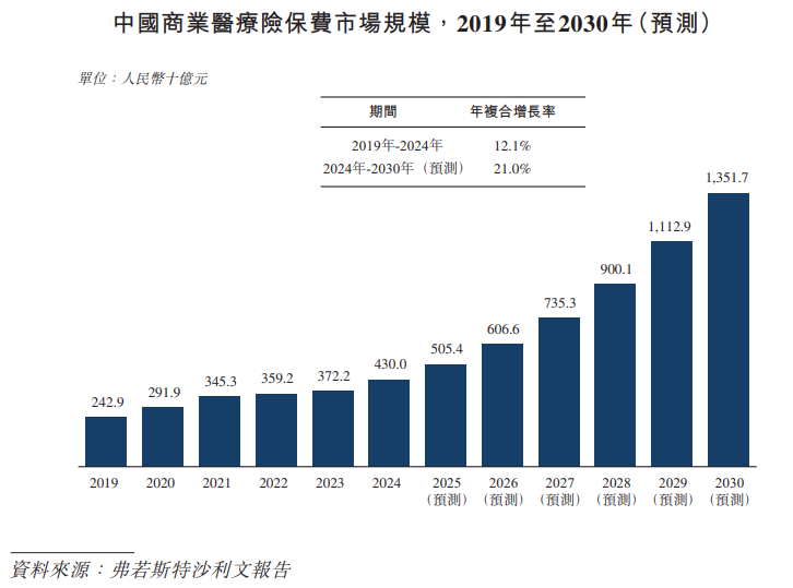 年,中国商业医疗险保费(不含重疾险、护理险及失能险)从人民币