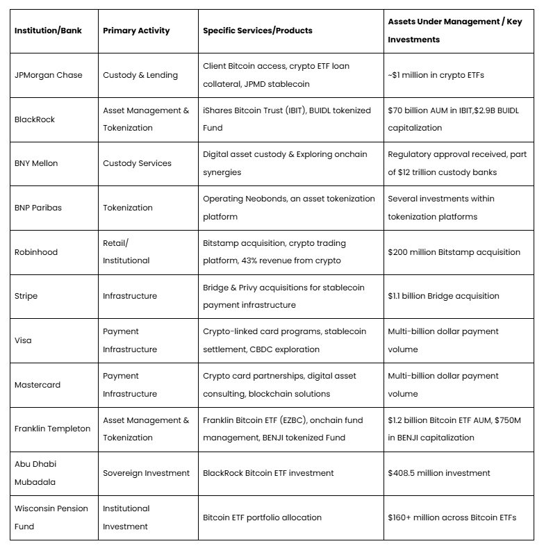 附加密货币领域最大的机构和银行: