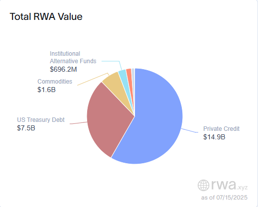 RWA:私人信贷、美国国债、商品前三大资产占比94%