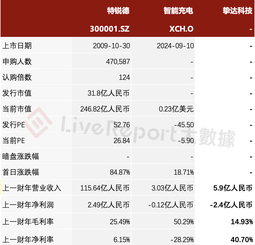 同行业IPO可比公司包括:特锐德(300001.SZ)、智能充电(XCH.O)