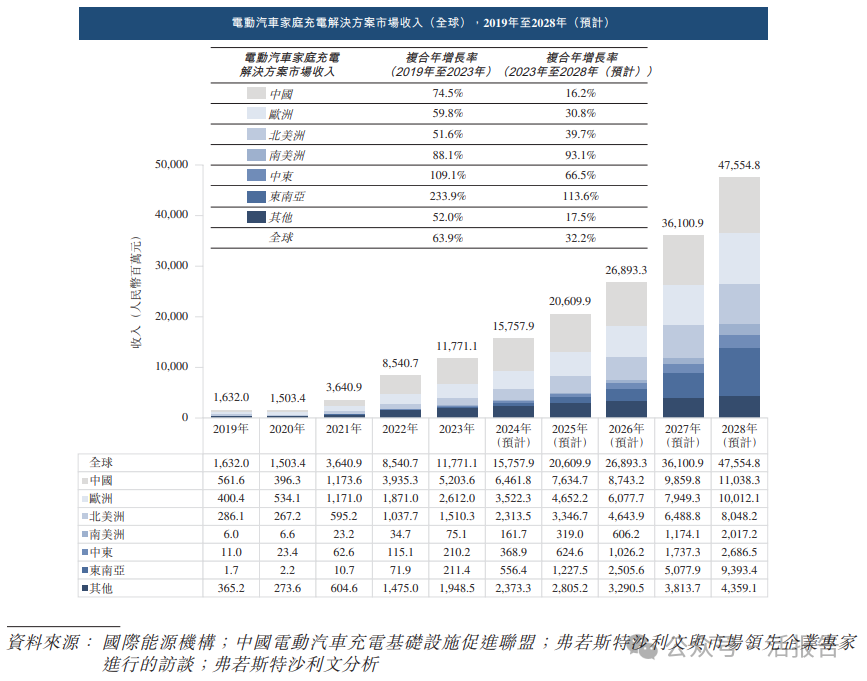 同期,中国、欧洲、北美洲、南美洲、中东及东南亚的电动汽车家庭充电解决方案市场总收入预计将分别按16.2%、30.8%、39.7%、93.1%、66.5%及113.6%的复合年增长率增长。