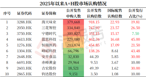 万人的申购追捧,海天味业、三花智控、宁德时代的申购人数均超过3