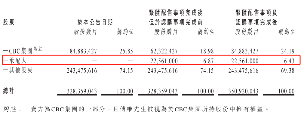配售股份的数目相当于公告日期已发行股份总数约(不包括库存股份)总数约6.87%;及紧随认购事项完成后经配发及发行认购股份扩大的已发行股份(不包括库存股份)总数约6.43%。