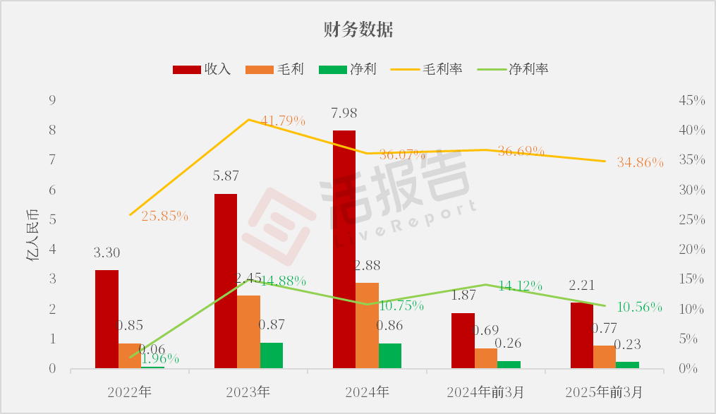 收入分别约为人民币3.30亿、5.87亿、7.98亿、1.87亿及2.21亿,2025年前3月同比增长率为18.37%;