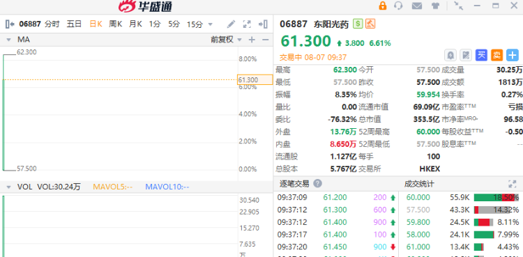 华盛资讯8月7日讯,“东阳光药”H股今日正式整体上市,首日股价大涨近7%,完成“H股吸收合并私有化+介绍上市”的创新资本运作。