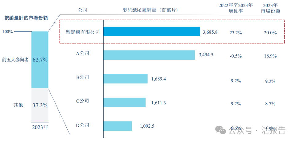按2023年的销量计,公司在非洲婴儿纸尿裤行业中排名第一。于2022年至2023年期间,公司的增长率在非洲前五大婴儿纸尿裤行业参与者中最高。