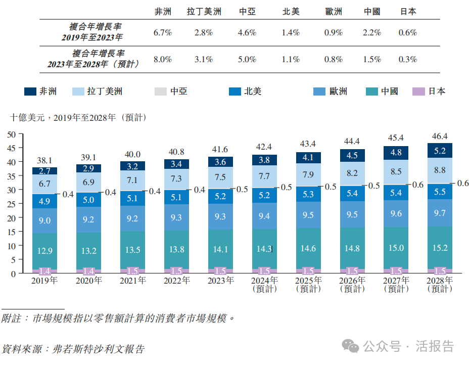 于拉丁美洲,该等产品的市场规模从2019年的67亿美元增长至2023年的75亿美元,复合年增长率为2.8%。预计该增长将会持续,市场规模到2028年将扩大至88亿美元,复合年增长率为3.1%。于中亚市场,市场规模由2019年的4亿美元增长至2023年的5亿美元,复合年增长率为4.6%。预计该增长将会持续,市场规模到2028年将增长至6亿美元,复合年增长率为5.0%。