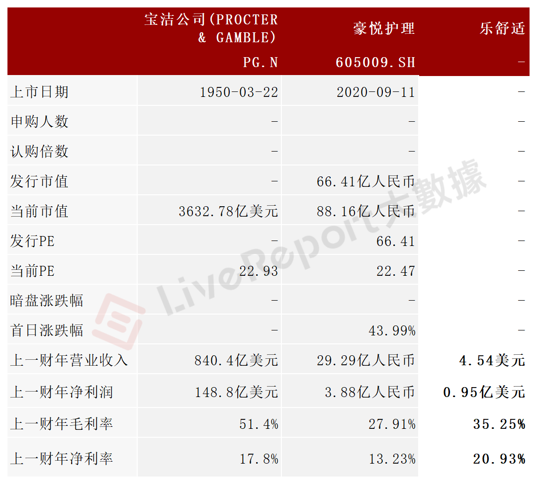 本次选取的同行业对比公司为:宝洁[PG.N]、豪悦护理(605009.SH)