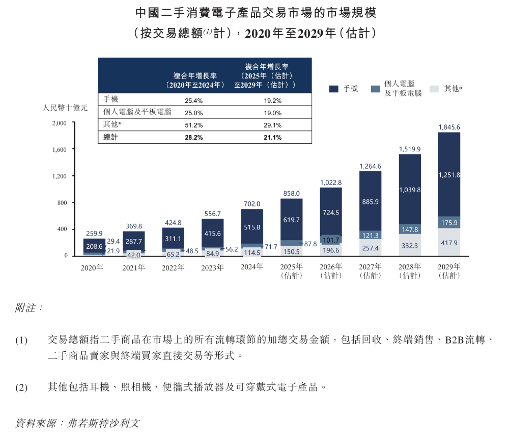 公司是一家从事提供消费电子产品回收服务的中国公司,专注于二手手机。根据 弗若斯特沙利文的资料,按2024年回收的二手手机交易总额及售出的二手手机交易总额计,