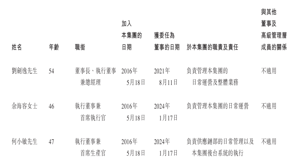 执行董事:余海容女士通过MGY Alliance BVI持股2.92%;何小敏先生通过Flash Recycle BVI持股2.44%;林乐新先生通过Lightning Recycle BVI持股1.79%;