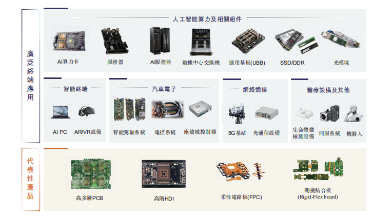 公司是全球领先的人工智能及高性能计算PCB供应商,专注于高阶HDI、高多层PCB的研发、生产和销售。根据弗若斯特沙利文的资料,以2025年第一季度人工智能及高性能算力PCB收入规模计,公司的市场份额位居全球第一,核心应用涵盖AI算力卡、服务器、AI服务器、数据中心交换机、通用基板等关键设备。