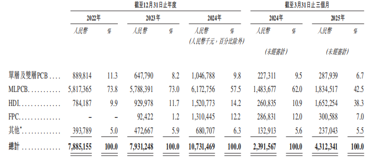 公司的最大收入来源来自MLPCB,2024年占比超五成;2025年前三个月,HDI产品的销售显着增长,占比接近四成,公司预计HDI仍将是未来总收入的主要贡献者。