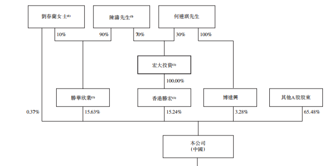 陈涛先生、刘春兰女士夫妇及其控制的实体(胜华欣业、香港胜宏)合计持股约31.24%;何连琪先生通过博达兴持股3.28%;其他A股股东,持股65.48%。