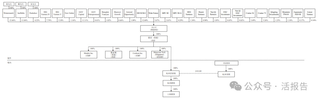 IPO前,黄晓煌通过Wintermatch持股15.46%,陈航通过Ineffable持股11.04%,朱皓通过Peekaboo持股4.22%,Wide Future(股权激励计划平台)持股3.67%。