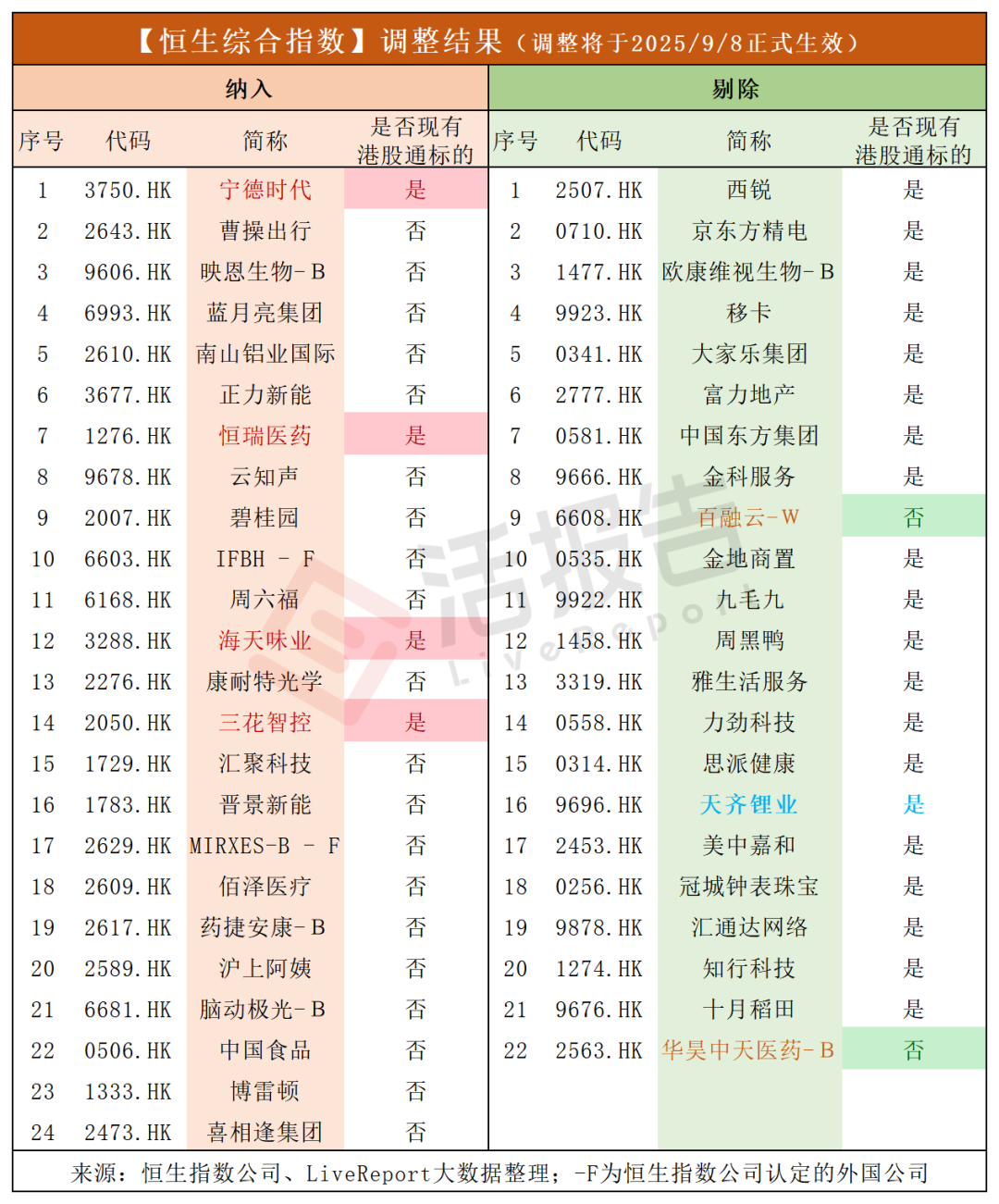 2025年8月22日,恒生指数公司宣布,截至2025年3月30日之恒生指数系列季度检讨结果,所有变动将于2025年9月8日(星期一)起生效。