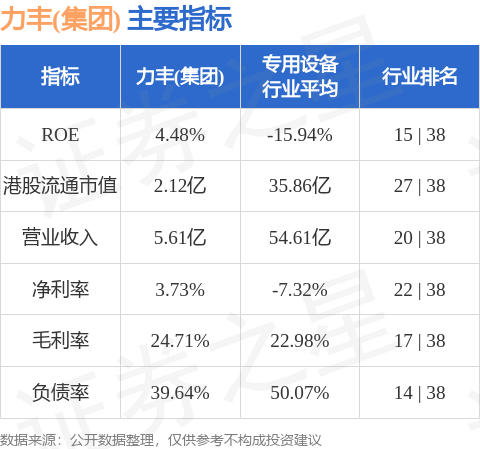 力丰(集团)港股市值2.12亿港元,在专用设备行业中排名第27。主要指标见下表: