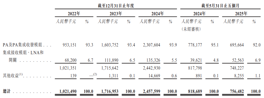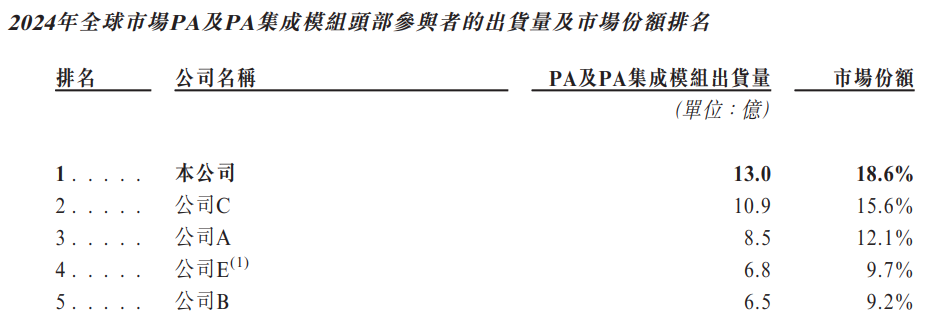 集成收发模块的领先供货商。根据弗若斯特沙利文的资料,按