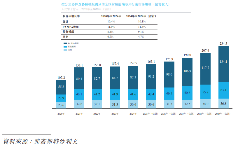 年,全球射频前端芯片销售收入将达到人民币