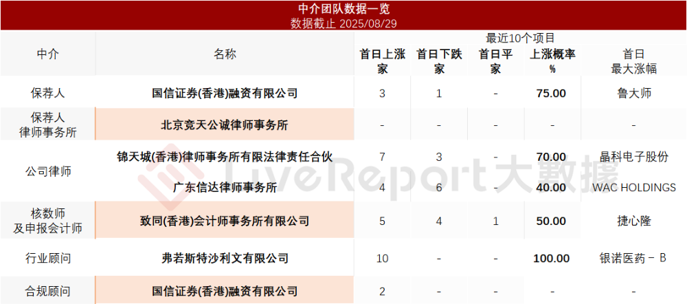 家保荐项目数据表现尚可;公司律师共计