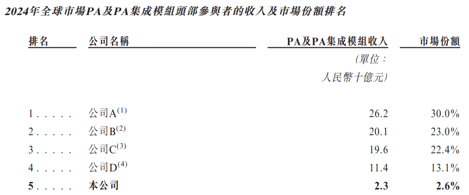 集成收发模块的收益计,公司位居全球第五,在中国公司中排